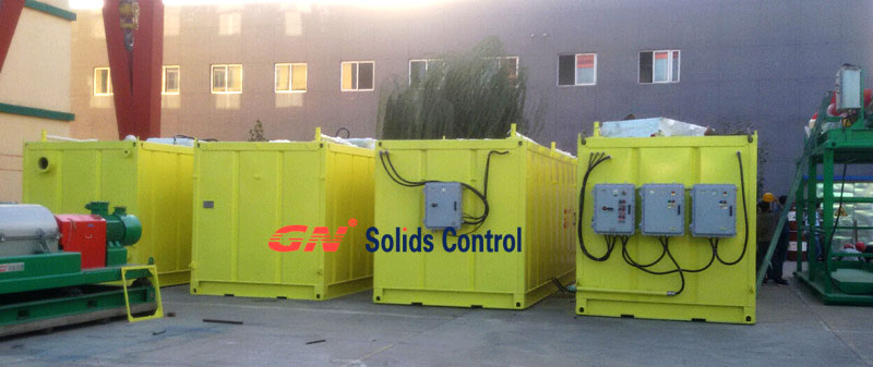 1、三套泥漿罐采用了相同的40英尺集裝箱的標準尺寸,其中一具泥漿罐配有2套75HP的剪切泵用來切割添加化學品的聚合物,以重新配置鉆井泥漿。